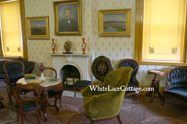 Some photos of the inside.You cannot walk in the rooms and there is limited space for taking photos.But here is a glimpse inside this mansion.Above the fireplace is a painting of Grants.Those black chairs are original.They are upholstered with silk.