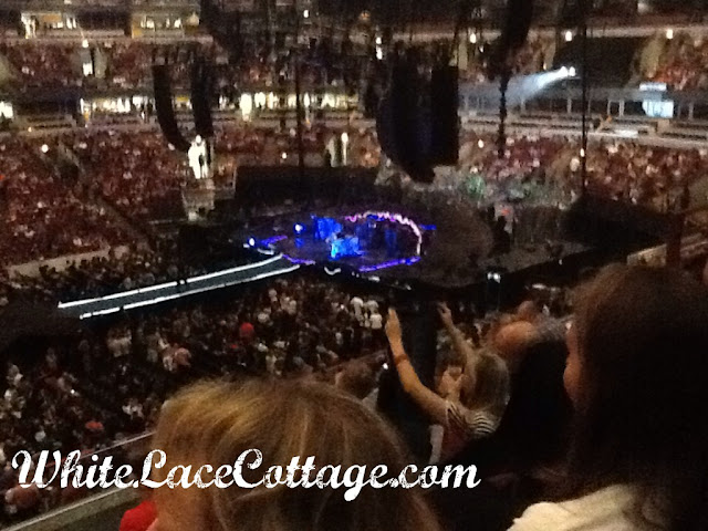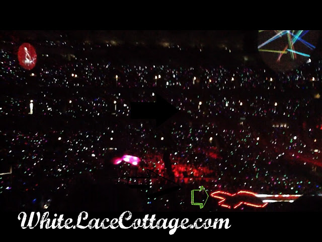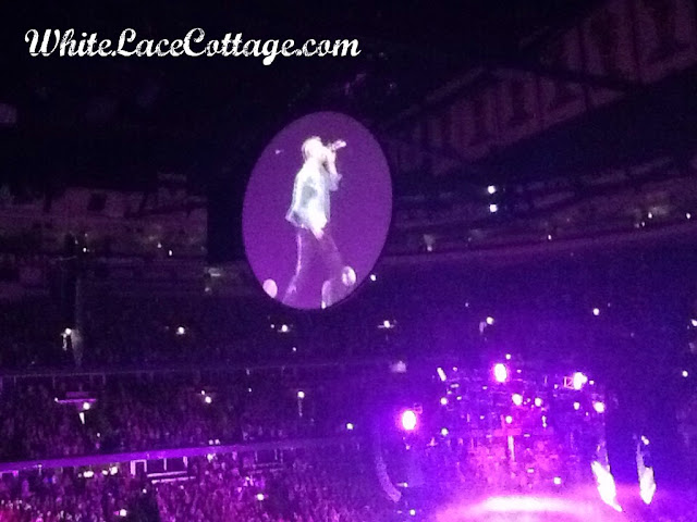 This concert was amazing.I have been to many concerts and this one really blew me away.Everyone received a wrist band that lit up during the show.It was beautiful a sea of twinkling lights.Then confetti came down from the ceiling several times with inflatable balloons that looked like globes.When they popped more confetti streamed out.They played all of our favorites! At one point the band was actually in a seated section playing not far from us!Those lucky fans that had far seats were now in the front row!!!!My daughter took photos with her ipad.They are not good quality but I thought I would share them anyway.