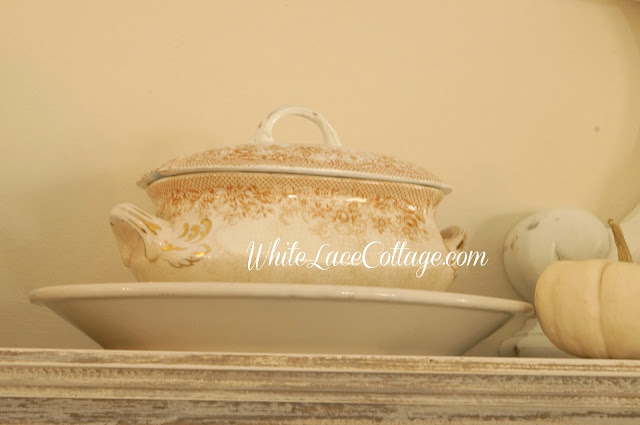 I need to start working on my mantel! Yours is SO pretty. I really love the soup tureen…it looks right at home here!