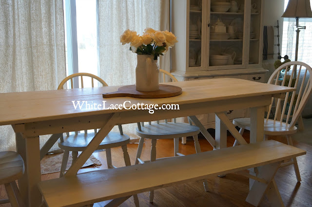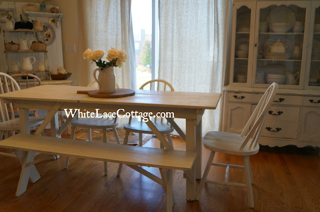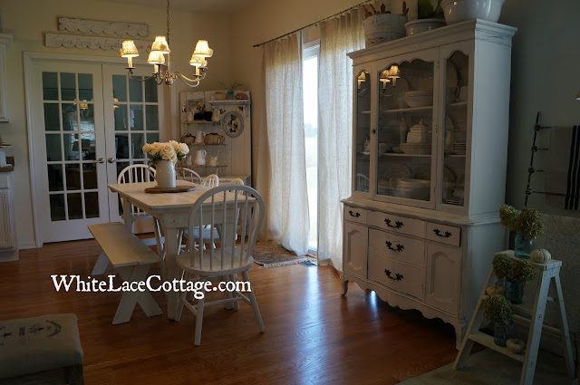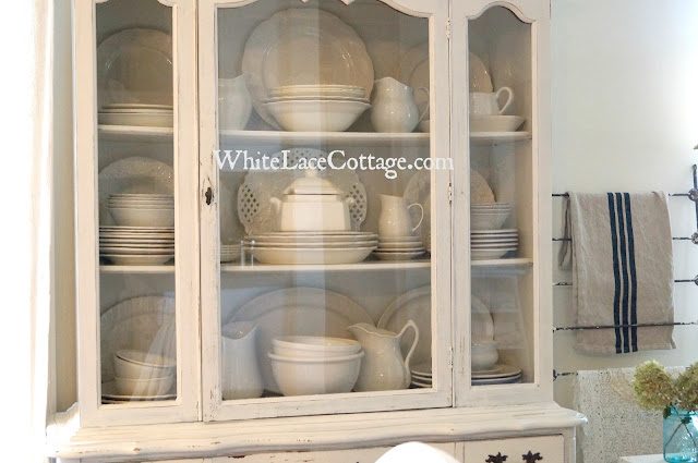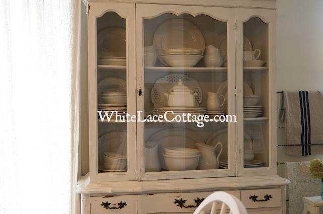 I love all the white in your kitchen and your table and chairs so pretty. You do have a wonderful collection of white ironstone, so perfect in your lovely china cabinet.