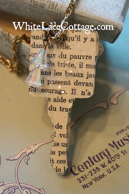 On the back I added a page from a vintage french book and added decoupage and a little glitter too! What girl does not like a little extra bling!