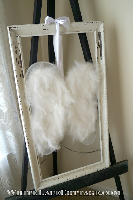 Back in the summer as I was out junking I came across three sets of Angel wings.One of them had feathers.I knew just when I would use these and I put them away.