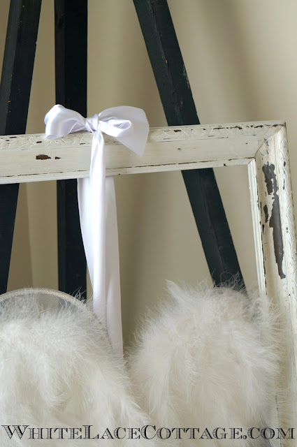 So so pretty. Love the angel wings. I also love how you displayed them in the chippy frame. Really pretty.