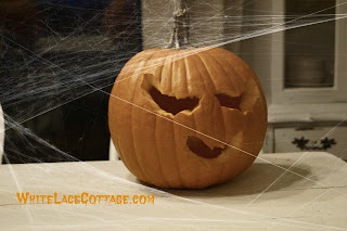 First we get all the yucky guts out of the pumpkin.