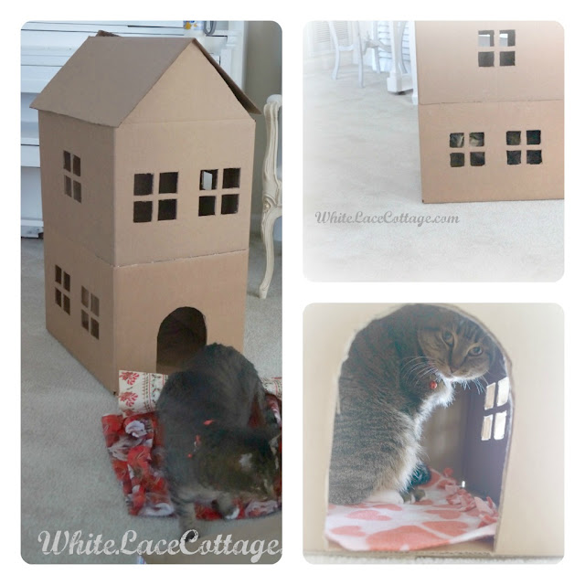 Ok, that cat house is like the greatest cutest idea EVER! I love it! Of course your kitty likes it, it’s a box! So funny…