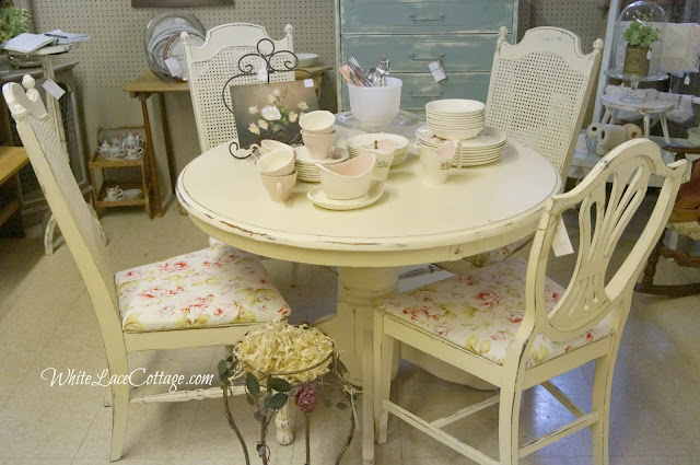 So Shabby Chic!!! Love that table and chairs AND the dishes with it. It must be hard to part with things you love.
