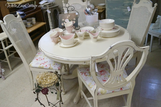 So Shabby Chic!!! Love that table and chairs AND the dishes with it. It must be hard to part with things you love.