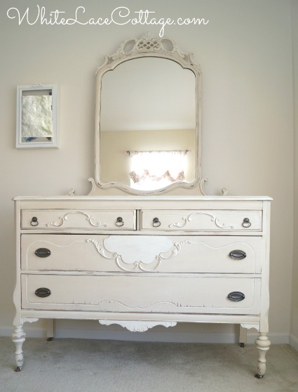 I really LOVE that dresser and mirror set! I think it’s much prettier painted too. It’s so shabby chic looking. So glad that you didn’t part with it. It’s truly a keeper!