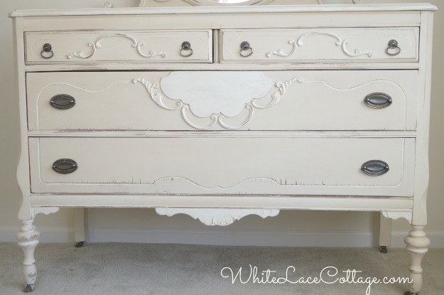 Your daughter’s dresser turned out gorgeous! I love all the carved applique detail highlighted with white. It was pretty in its original state, but just as lovely painted. I painted a little dresser the other day, myself, and love the lighter painted finish instead of the original dark stain.