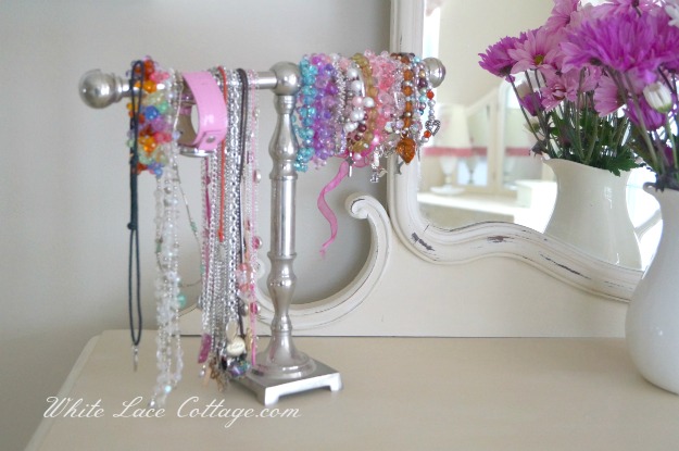That is a towel bar I am using for her jewelry and an idea I got from a friend on how to  display her earrings.