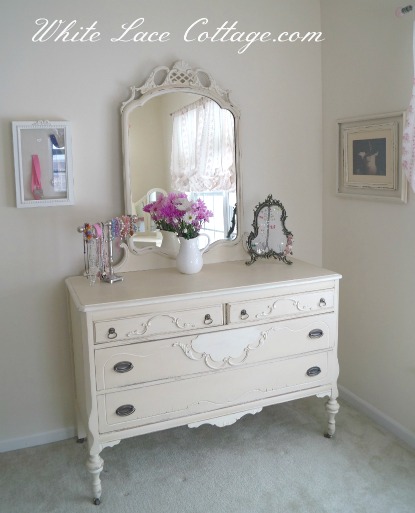 Oh how I love this dresser! The details are so sweet!I added some fresh flowers on her dresser for the photos.